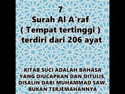 Surah ke 7 Al A’raf ( Tempat yang tertinggi ) terdiri dari 206 ayat
