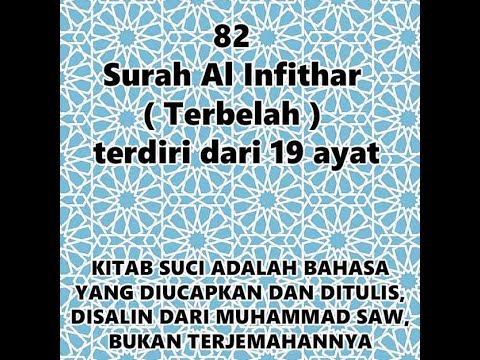 Surah ke 82 Al Infithar ( Terbelah ) terdiri dari 19 ayat